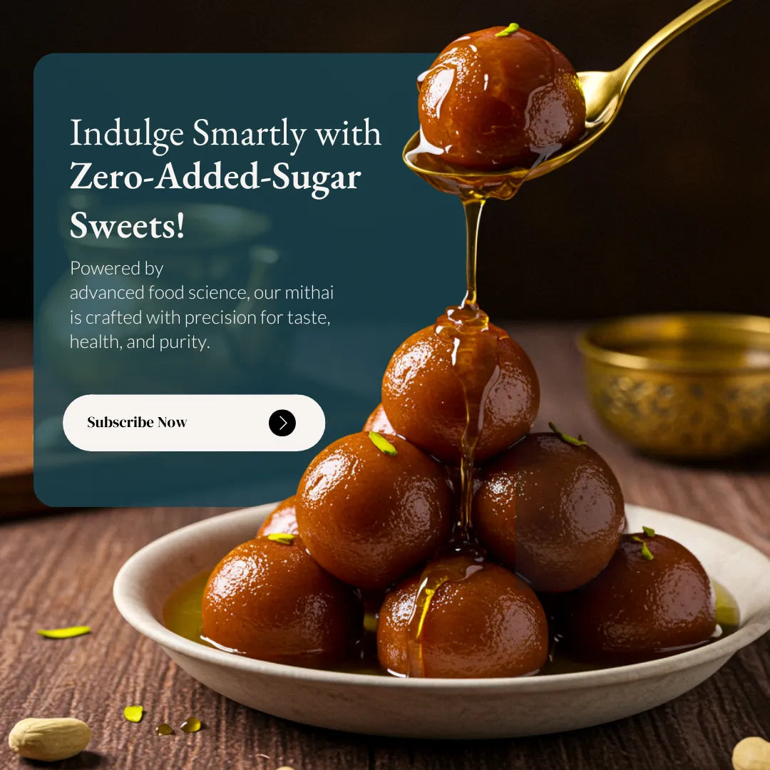Taste our Bengali Rasgullas, prepared with premium ingredients and naturally sweetened with Stevia Premix. Relish the authentic spongy texture without the guilt.